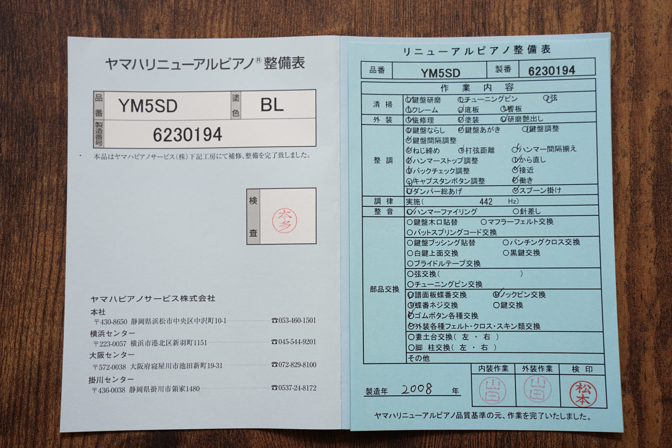 ヤマハリニューアルピアノYM5SD(売約済)