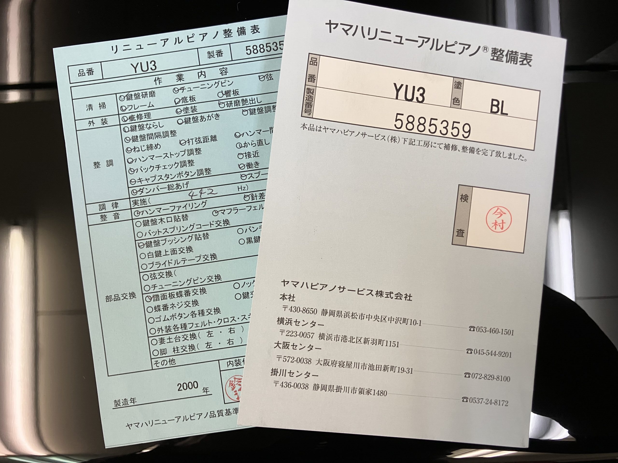 ヤマハリニューアルピアノ YU3